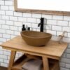 A contemporary concrete vessel sink designed for bathroom counters.